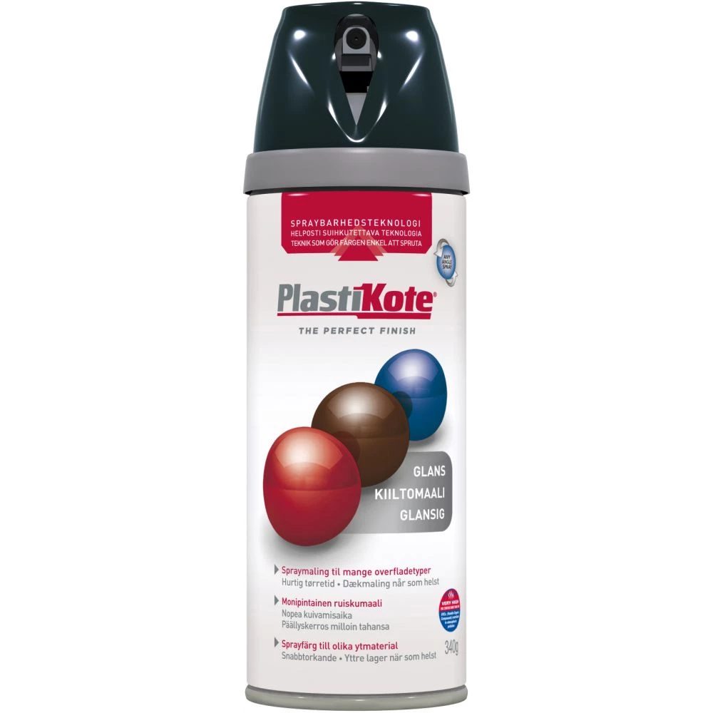 Plasti-Kote Twist & Spray er resultatet af mange års forskning og praktisk erfaring hos Plasti-Kote, der med denne all-round spraymaling har udviklet en enestående alsidig spraymaling i en klasse helt for sig. Har et unikt patenteret spraysystem. Giver en meget finere forstøvning, 33% mindre trykkraft ved brug, mindre tryk i dåsen og dermed færre ’løbere’. Nemmere at bruge end traditionelle spraymalinger. Kan spraye uanset hvordan dåsen vender. Serien har et stort udvalg af RAL kulører med farveægte pigmenter. Den er slagfast, elastisk og særdeles slidstærk. Findes i mat, blank og satineffekt. Primeren fås i 2 farver Hvid og Grå. Klar Lak fåes i Blank og Mat. Plasti-Kote Twist & Spray indeholder ingen tung-metaller, og kan uden problemer bruges på børns legetøj og møbler.