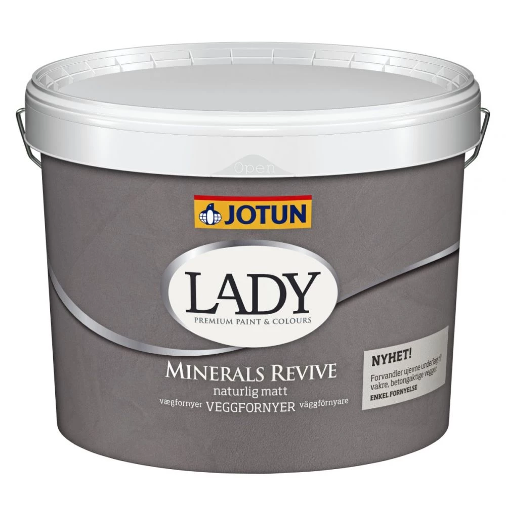 Med nyheden LADY Minerals Revive fra Jotun får du det sidste nye indenfor vægfornyelse. LADY Minerals Revive er en indfarvet spartelmasse som forvandler ujævne overflader til smukke betonlignende vægge.