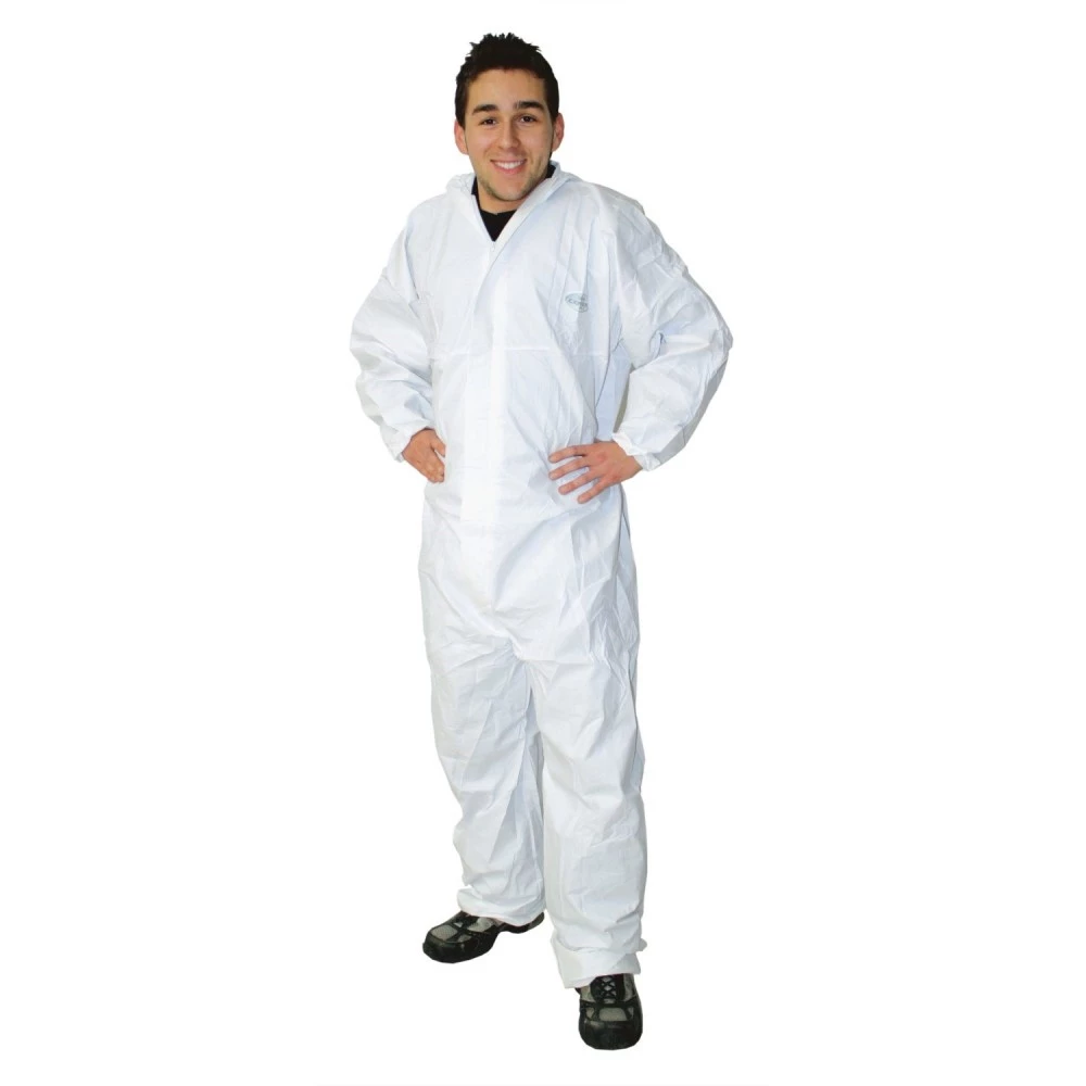 Beskyttelsesdragt i kategori 3 med hætte samt elastik ved hætte, håndled, ankler og i talje samt lynlås foran.