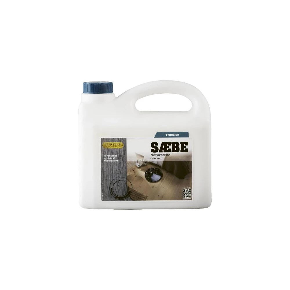 Trip Trap Natursæbe er en specialudviklet kvalitetssæbe til rengøring og vedligeholdelse af alle former for trægulve (dog ikke lakerede gulve) samt til efterbehandling af trægulve og andre træoverflader, trapper m.v. Sæben trænger dybt ind i træet og giver en blød, smuds- og vandafvisende overflade. Natursæbe, natur anvendes typisk til mørke træsorter. Natursæbe, hvid og ekstra hvid til lyse træsorter.